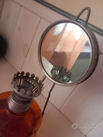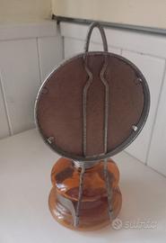 Componenti metallici: Include un bruciatore metallico filettato e un supporto che sostiene un piccolo specchio circolare.