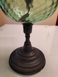 Coppia di lampade antiche a olio/petrolio perfette, con base in bronzo decorato e ampolla in vetro colorato. Perfettamente funzionanti e/o da collezione/arredo, Eur 59 cadauna.