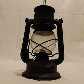 una leva permette di sollevare il paralume oer accendere lo stoppino e una rotellina per aumentare la fuoriuscita dello stoppino.