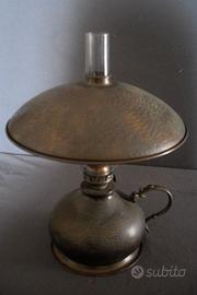 lampada a petrolio per scrivania, ottone martellato e vetro, anni 20, altezza cm.40 diametro capello cm. 29. ritiro a Serramanna (SU) non spedisco.