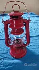 Lampada a petrolio vintage, colore rosso.