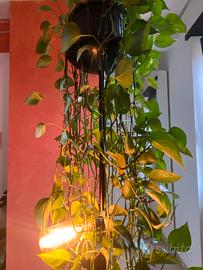 E’ stata modificata per restare una lampada, ma poter allo stesso tempo essere una porta piante. Può contenere un vaso grande in alto e poi 4 vasetti sull’asta verticale. La vendo senza piante. Ritiro ad Acilia