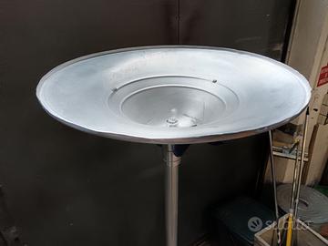 Una rarissima lampada a piantana di produzione USA, inizio anni 1960, con struttura in acciaio satinato e finitura in plexiglass blu. Si tratta di una lampada in origine di importazione dagli Stati Uniti, di grande interesse per collezionisti. Diametro superiore: 54 cm Altezza: 185 cm È richiesto il ritiro. Grazie. “La lampada presenta i segni del tempo, come da foto, seppur molto ben conservata. Si consiglia la revisione dell’impianto elettrico, non essendo più a norma”