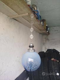 Lampadario a globo in vetro di Murano, vintage anni 70, di Carlo Nason per Mazzega. Dimensioni sfera 29 cm. Altezza lampadario dal soffitto 102 cm .