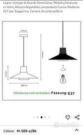 Lampada a sospensione, 1 Fiamma Nero, Lampadario Vintage, Metallo Industriale, Paralume in Vetro, Sopra in Legno, per Ssala da Pranzo, Cucina, Soggiorno, Camera da letto. Diametro 28cm.Prezzo Acquisto 43,99 Vendo 25 euro.