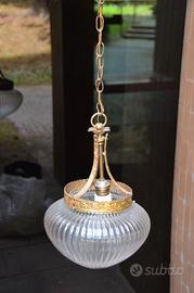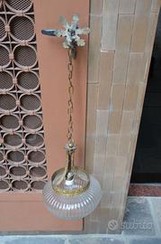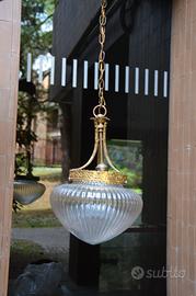 Lampada a sospensione antica in vetro rigato