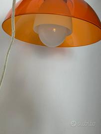Lampada a sospensione usata ma perfettamente funzionante con attacco lampada standard E27, diametro circa 30 cm ,lunghezza cavo circa 80cm, è costituita da materiale plastico per lo scudo arancione e vetro bianco per il diffusore interno, molto luminosa, cedo compresa lampada a risparmio energetico led 10w . Attenzione non spedisco (la spedizione avrebbe lo stesso valore della lampada) e non tratto sul prezzo (pagata piu del doppio senza lampadina), prego astenersi perditempo, ritiro a carico dell’acquirente o consegna in zona