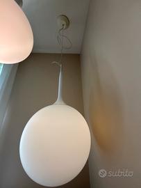 Vendo lampada a sospensione Artemide Aggregato Sfera Saliscendi originale, design Enzo Mari. Diffusore sferico in vetro opalino bianco, luce calda e uniforme ideale per soggiorno, sala da pranzo o camera. Sistema saliscendi regolabile in altezza. La lampada è in ottime condizioni, senza crepe o rotture, perfettamente funzionante. Normali segni del tempo sul cavo, ma nulla che comprometta l’estetica o l’uso.