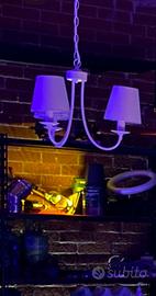 Lampadario a sospensione con 3 paralumi bianchi, attacco lampadina e14. Praticamnete nuovo
