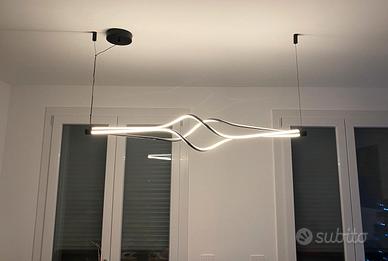 Lampada a sospensione CURL (nuova-usata 15 giorni) con telecomando .versione Nera. Sospensione lineare, montatura in metallo verniciato e nero, diffusore in silicone opalino bianco. Emmisione 360° LED integrato Consegna a mano - no perditempo