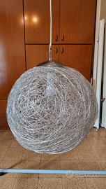 Lampada a sospensione intrecciata in filo di alluminio tipo Fil de Fer, attacco E27. Diametro 50cm bellissimo effetto di luce