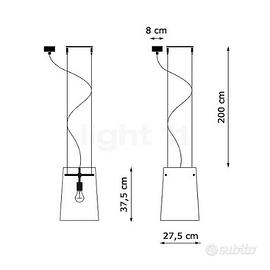 Misure cm 116 (altezza totale dal soffitto) x cm 37,5 (altezza diffusore in vetro) x cm 27,5 (diametro).