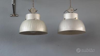 Vecchia lampada industriale in metallo e campana in vetro - completa ancora in ottimo stato - diametro 48cm, altezza 45cm - vendo a 60€/pz - sono disponibili 16 lampade.