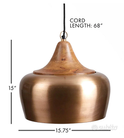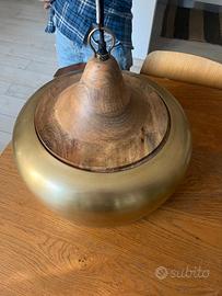 Dal tocco rustico-moderno questa lampada a sospensione unisce materiali caldi e naturali. Fa una luce bellissima e crea un effetto davvero unico nella stanza. La vendo per trasloco.