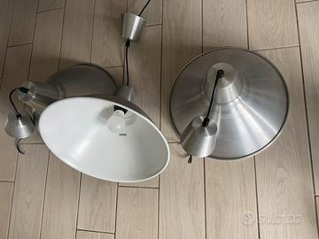 Vendo n. 3 lampade a sospensione Stile industriale. Colore grigio chiaro. Diametro nella parte piu lunga 39 cm.