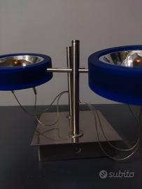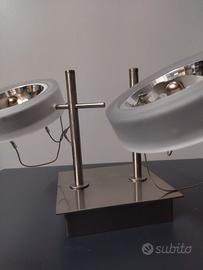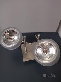 Feel 2 Sospensione, lampada da parete/soffitto con 2 luci, diffusori orientabili in senso verticale di 300°, in senso orizzontale di 350°. Diffusore in vetro pressato cristallo con finitura bianco satinato. Montatura in metallo con finitura nichel spazzolato e particolari cromati. Sorgente luminosa Eco-incandescenza: 1 x max 50W Halospot 111 per punto luce, oppure Eco-alogena, oppure LED