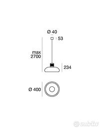 Lampada a sospensione modello Trepiú di Stilnovo. Usata in esposizione per breve periodo, presenta un piccolo striscio impercettibile nella parte alta e indicato nelle foto. Completa di imballo originale.