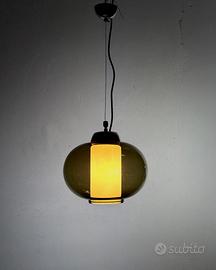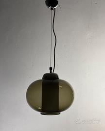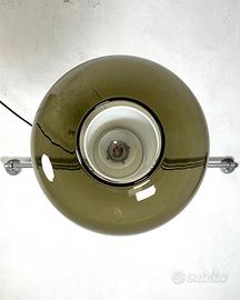 Lampada a sospensione vintage in stile scandinavo anni '60 composto da un cilindro di vetro incamiciato bianco e una boule esterna in vetro fumè.