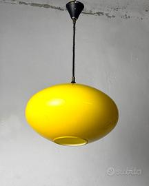 Lampada a sospensione gialla in vetro di Murano soffiato e incamiciato prodotta dai maestri vetrai dell'isola veneziana negli anni '60.