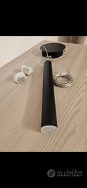 Questa è una lampada a sospensione singola a cilindro nero della serie Prado di Fabas Luce. ne ho 3 a disposizione, nuove ancora imballate.