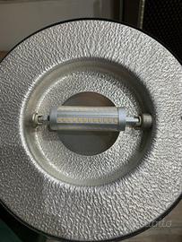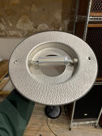 Lampada a stelo da pavimento, struttura in metallo, colore nero con finiture in ottone, altezza ca. 180cm, diametro paralume 20cm, diametro base 30cm, cavo di alimentazione da 150cm con dimmer regolabile a piede, completa di lampadina led di ottima qualità. Buone condizioni estetiche generali e correttamente funzionante. Ritirabile presso mia abitazione o in zona Verona/Vicenza o Padova previo accordi.