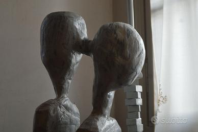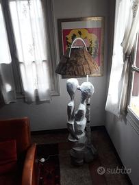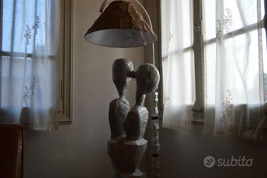 Lampada a stelo in legno e pietra Lampada artistica rappresentante due innamorati che si baciano sotto il lampione. Scultura in legno di rovere sapientemente scolpita e levigata da uno scultore del vicentino. Pezzo interessante da vedere ma soprattutto emozionante nel toccarlo ed averlo in casa non passa inosservato. Pezzo unico Misure: altezza 172 cm Larghezza 30 cm