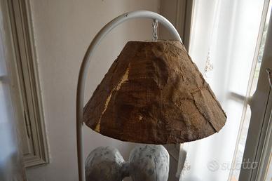 Lampada a stelo in legno e pietra