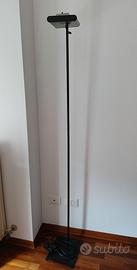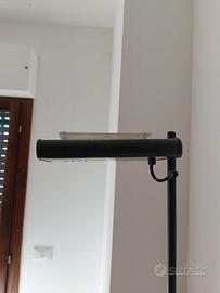 Lampada a terra nera con varialuce per regolare l'intensità della luminosità.