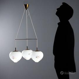 Lampada vintage di manifattura italiana a tre punti luce con struttura in