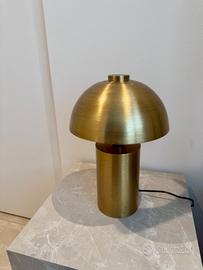 abat-jour colore tra il dorato satinato moderno in metallo spazzolato, leggero, forma simile ad un fungo è il completo decorativo ideale come luce d ambiente facile da combinare in qualsiasi stanza, design che ricorda l iconico atollo di Oluce