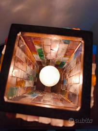 Stupenda Lampada da tavolo/abat-jour attribuibile a Poliarte. Realizzata negli anni 70' in ferro battuto verniciato a mano e mosaici di vetro di murano multicolore.