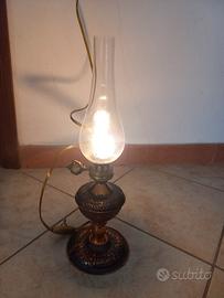Originale lampada abat jour stile vintage in rame, con lampadina, cavo lungo cm.145, spina e interruttore per l'accensione. Altezza cm.37,5. Funzionante, vedi ultima foto. Massima cura nell'imballaggio.