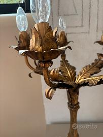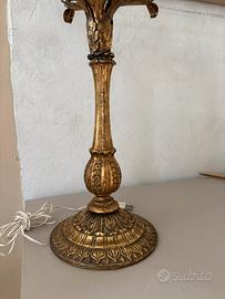 LAMPADA abat Jour da tavolo, realizzata in FERRO BATTUTO verniciato ORO e decorato con foglia acanto. Oggetto antico e ricercato per la sua realizzazione prestigiosa.