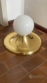 Applique disegnata da Achille Castiglioni per Arteluce e Flos negli anni sessanta. Il design iconico di questa lampada include un corpo in alluminio e ottone lucido con un paralume opalino bianco, che diffonde una luce morbida ed elegante. Le condizioni sono ottime, conservando il fascino senza tempo del design originale. Dimensioni: 30 x 42 cm. Modello fuori produzione. Disponibili 3 pezzi. Consegna a mano, spedizione da valutare