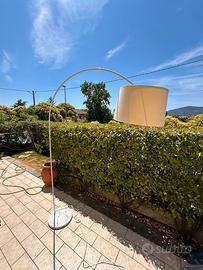 Lampada da arredamento ad arco in acciaio con base in marmo bianco e paralume in tela - Arc XL