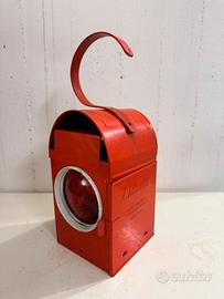 Lampada ad olio rossa vintage da ferroviere/lavoro