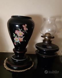 Vendo come da foto ... Lampada stile vintage antico per arredare casa salone soggiorno camera da pranzo. Lampada ad olio corpo nero con decorazioni e candelotti in vetro, pezzo bellissimo per gli amanti del vintage e collezionisti.