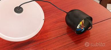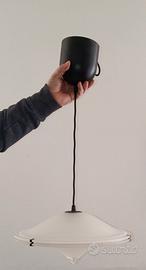 Lampada a sospensione Alien, designer Luciano Cesaro per Tre Ci Luci, Italia. Periodo del design 1970 - 1979. Realizzata in vetro satinato e metallo nero con sospensione a cavo. Misure lampada (no cavo) : H 20 cm Diametro 38 cm