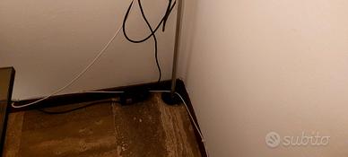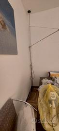 Vendo elegante lampada con sistema di fissaggio terra-cielo (a pressione tra pavimento e soffitto), perfetta per illuminare il tavolo da pranzo senza dover forare il soffitto. Design funzionale: Lo stelo verticale è regolabile per adattarsi a diverse altezze di soffitto. Il braccio orizzontale è orientabile a 360° e posizionabile all'altezza desiderata. Luce di qualità: Utilizza una lampadina alogena che garantisce una resa cromatica calda e naturale, ideale per la zona pranzo. Regolazione: Dotata di dimmer a pedale per regolare l'intensità luminosa (da luce soffusa a piena potenza). Cablaggio: I cavi sono lunghi e possono essere avvolti intorno allo stelo (come in foto) o gestiti liberamente a seconda delle necessità. Condizioni: Ottimo stato, struttura solida e salvaspazio (non ha basi ingombranti sul pavimento).