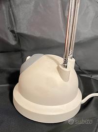 Lampada Alogena da tavolo Giugiaro Design vintage bianco. Regolabile in altezza da 25 a 43 cm e orientabile. Dotata di lampada alogena, perfettamente funzionante, due intensità di luce. Presenti alcuni aloni grigiastri sulla plastica bianca, da ripulire (vedi foto).