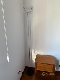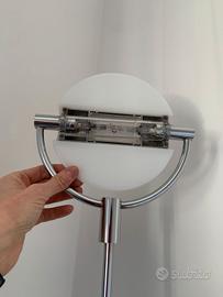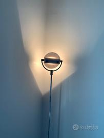 Vendo lampada a terra minimal in acciaio lucido e vetro temperato opalino. Possibilità di modulare l'intensità della luce perché dimerabile con il piede. Base nero satinato. Alta 190 cm. Attacco lampada alogena. La cima di vetro può essere direzionata in varie direzioni