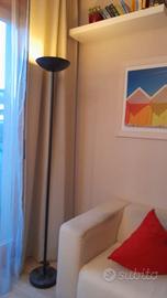 Lampada alogena, struttura massiccia in metallo verniciato a fuoco, colore nero. Misure: cm. 190, base diametro cm.35.