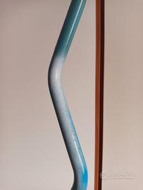 lampada alta da terra altezza 185 base rotonda con diametro di 30 cm in ferro stelo a onda e cappello in vetro satinato di colore azzurro con un diametro di 30 cm