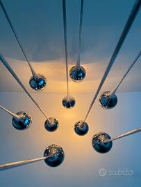 Lampada a sospensione a 9 luci di Angelo Brotto per Esperia, originale, supporto verniciato bianco e struttura cromata. Condizioni eccellenti, solo ritiro a mano.