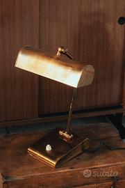 Lampada anni ‘50 da tavolo ministeriale in ottone, con sezione a campana girevole. Ottime condizioni.
