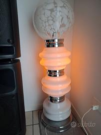 vendo lampada anni 70 in vetro opalino bianco in ottimo stato con luci di diverso colore con doppio tasto x accensione luci altezza 115cm