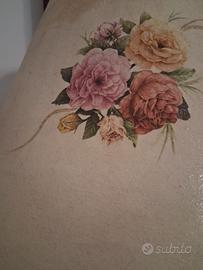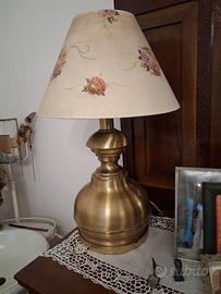 Lampada in ottone degli anni 70 cm 64 altezza e diametro cm 46 ben conservata con paralume particolare sfondo sfumato e con rose .