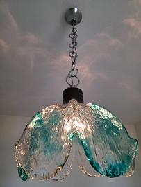 Lampada a sospensione floreale a forma di fiore Murano chiara e blu disegnata da una luce molto bella quando viene illuminata, riflettendo la forma del fiore sul muro.