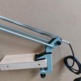 Vendo lampada a bracci degli anni 70/80, riposizionabile, snodabile, pieghevole da scrivania, tavolo, ufficio, studio, officina, laboratorio, colore grigio, completa di supporto a morsetto integrato originale.