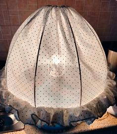 Lampada da tavolo, base ceramica, paralume cotone a pois, ben tenuta e funzionante
